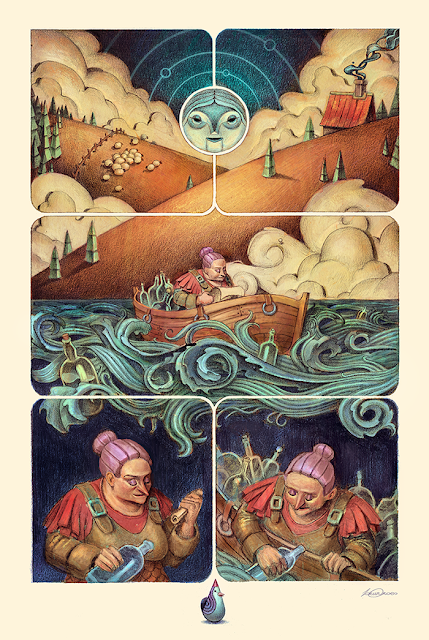 A few weeks ago the lovely folks over at Gallery Light Grey Art Lab asked me if I would like to be a part of their "Message In a Bottle" Show. Naturally I accepted and ended up making this illustration / panel, which is available as a print on their website for a limited time only!